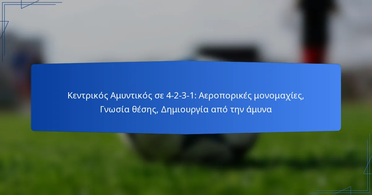 Ο κεντρικός αμυντικός σε μια διάταξη 4-2-3-1 είναι καθοριστικός τόσο για τη defensive σταθερότητα όσο και για την εκκίνηση επιθετικών παιχνιδιών. Οι βασικές ευθύνες περιλαμβάνουν