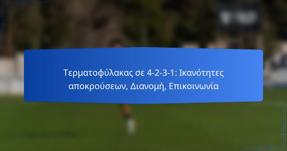 Σε μια διάταξη 4-2-3-1, ο τερματοφύλακας παίζει έναν καθοριστικό ρόλο που ξεπερνά την απλή απόκρουση των σουτ. Η κυριαρχία στις ικανότητες απόκρουσης, η αποτελεσματική διανομή